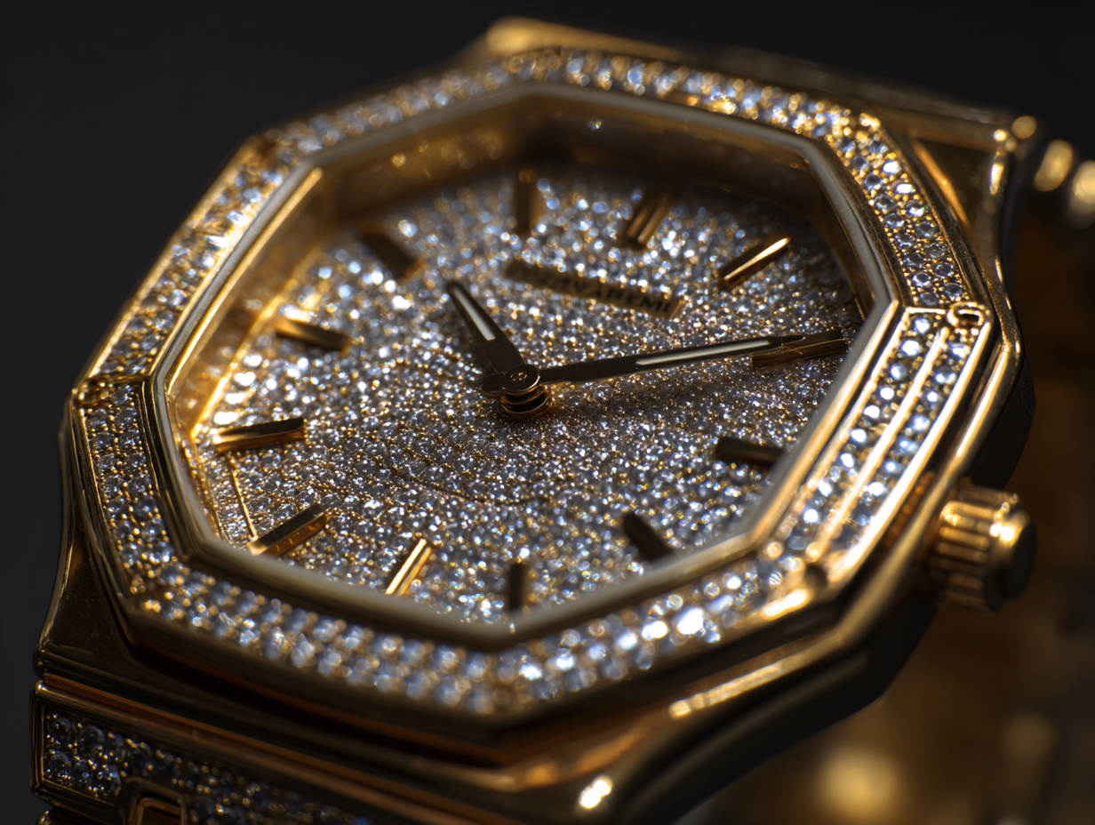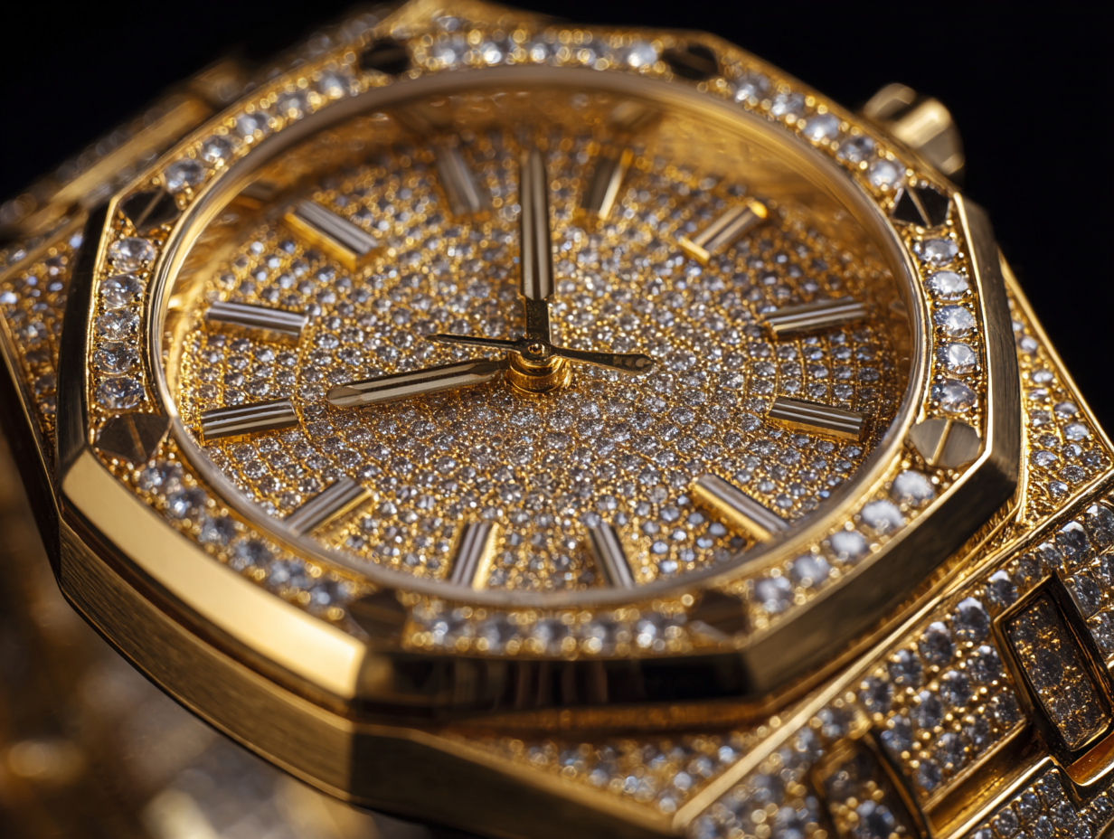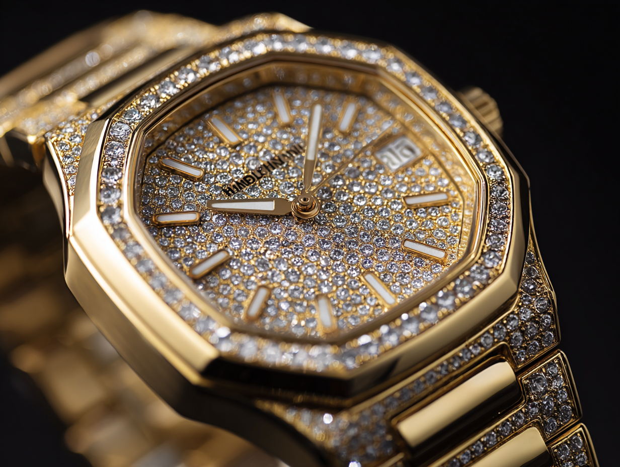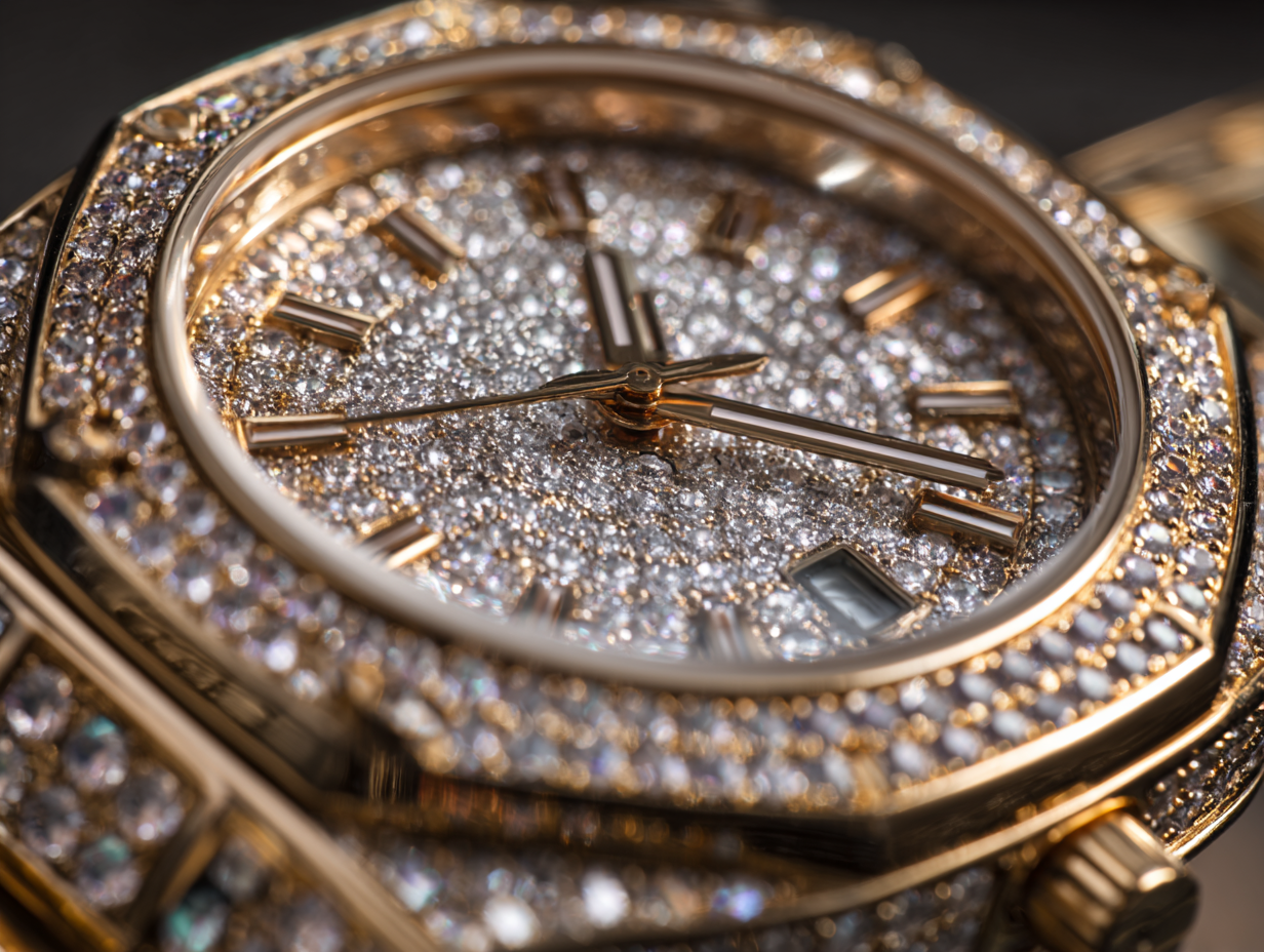 The pinnacle of our collection. This exclusive modification involves over 200 hours of precision setting. The case and bracelet are meticulously hand-set with lab-created VVS-grade Zirconia crystals, offering the brilliance of diamonds without the conflict.